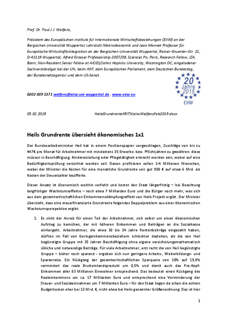 Pressemitteilung: Heils Grundrente übersieht ökonomisches 1x1